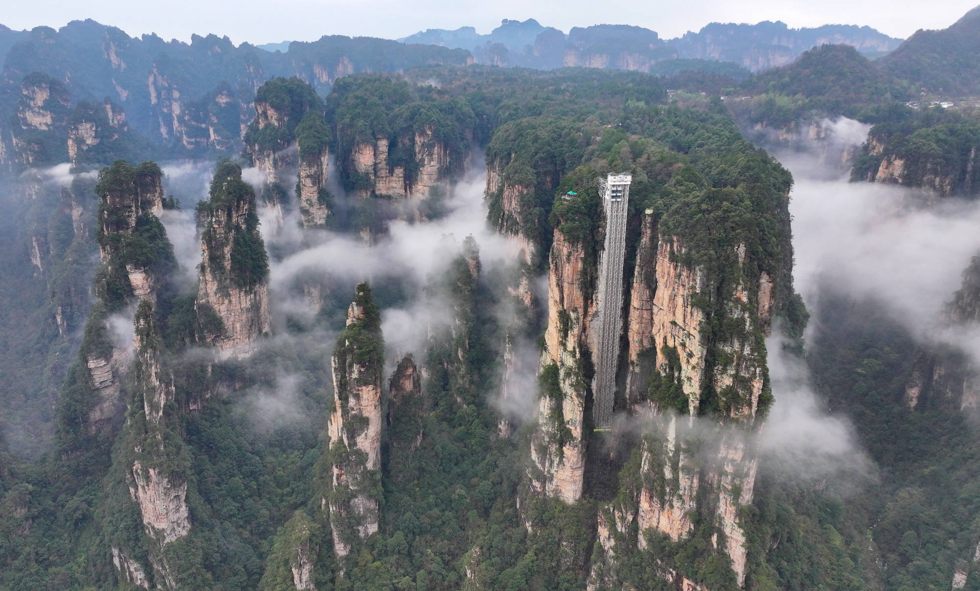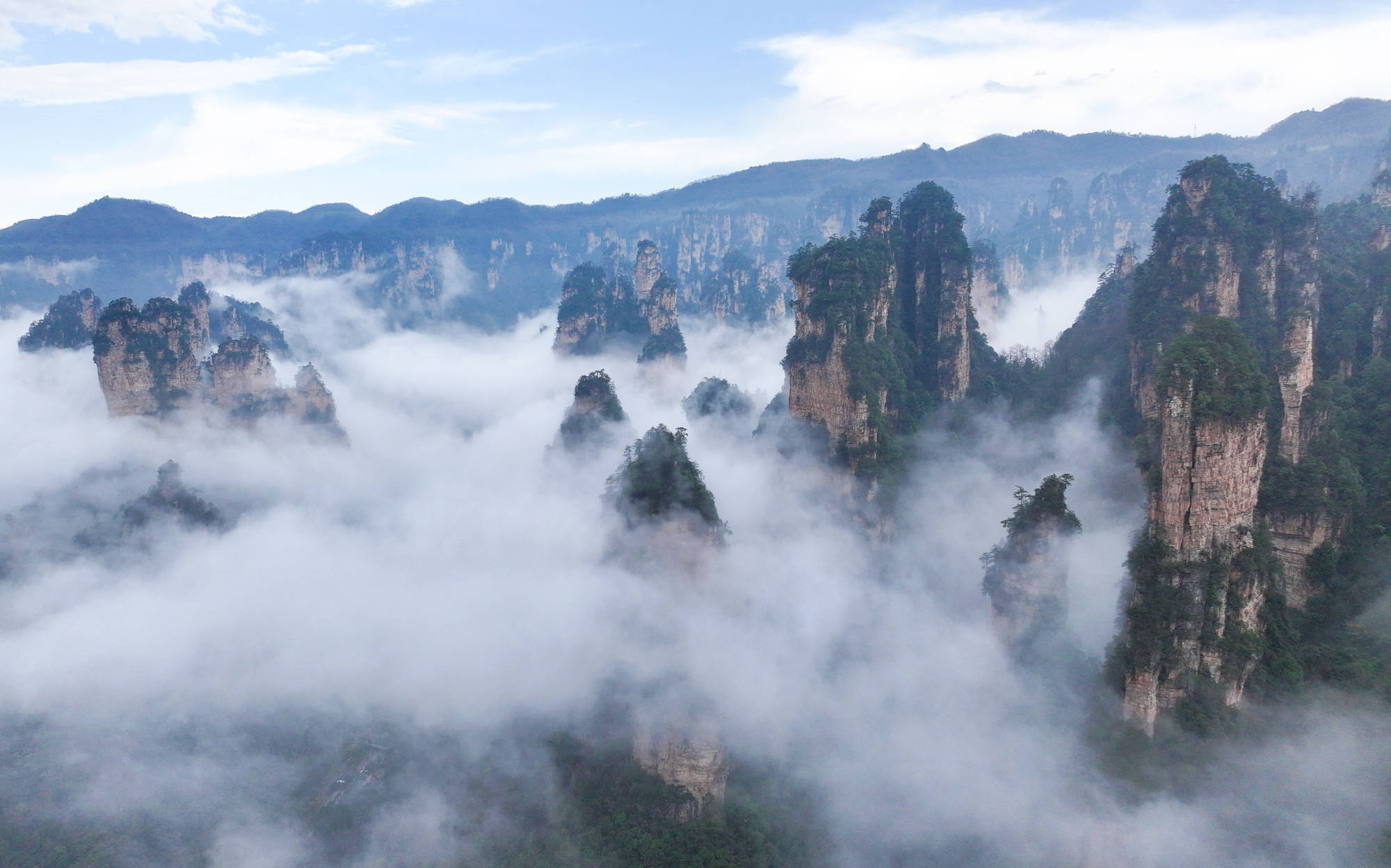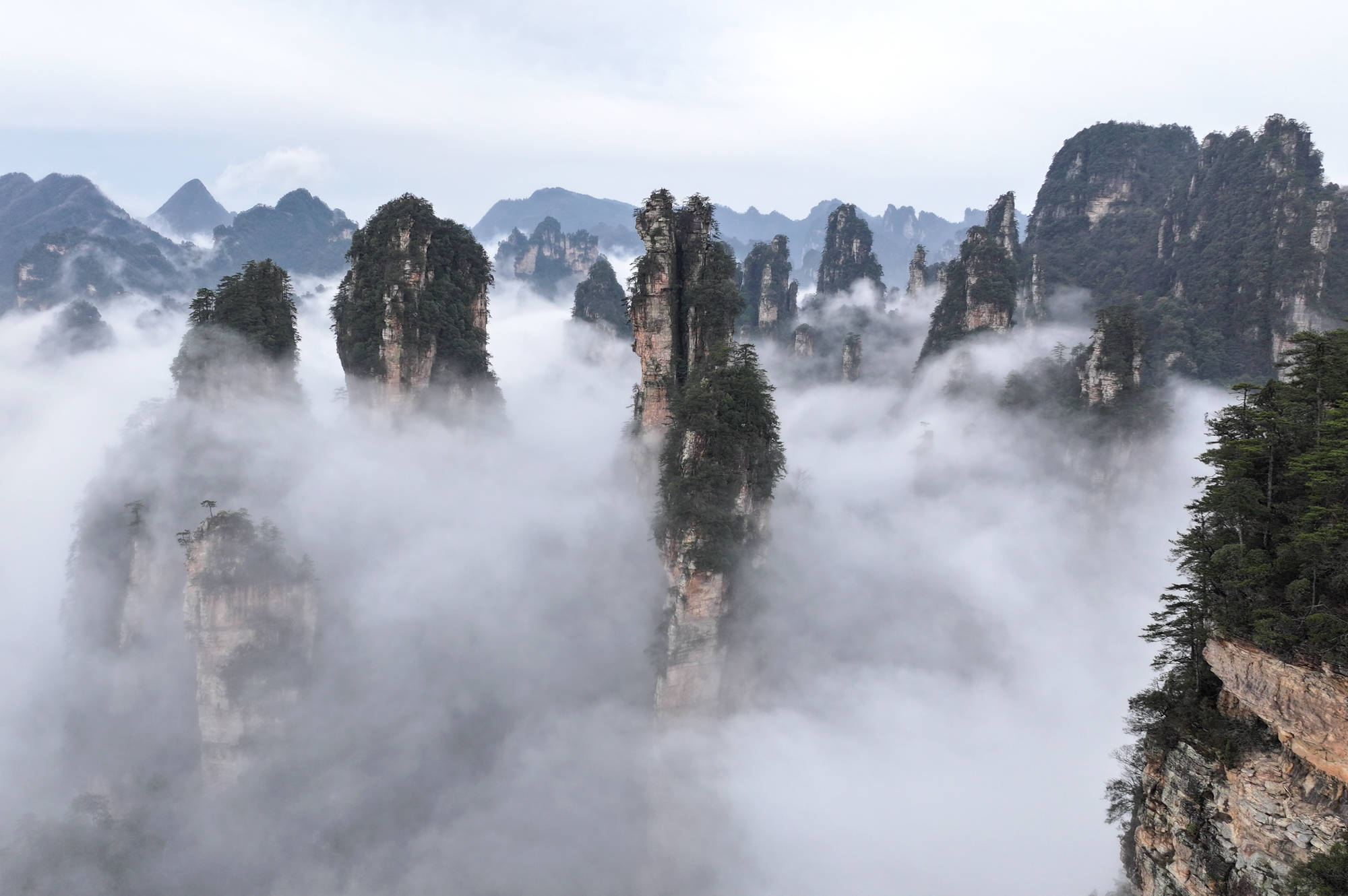 以上图片:2026年3月27日在湖南张家界国家森林公园拍摄的云海景观。(无人机照片)CICPHOTO/吴勇兵 摄